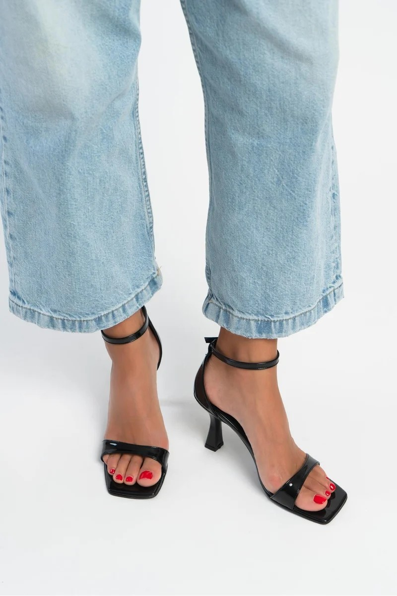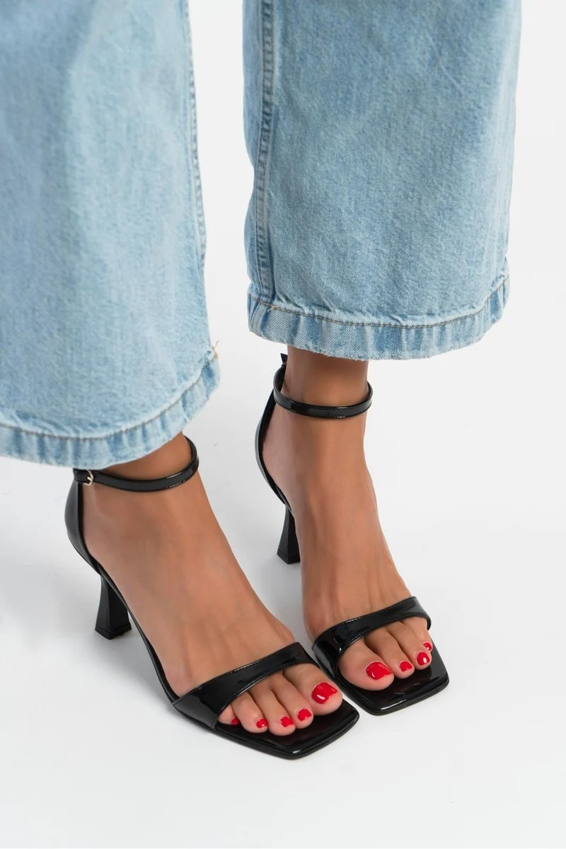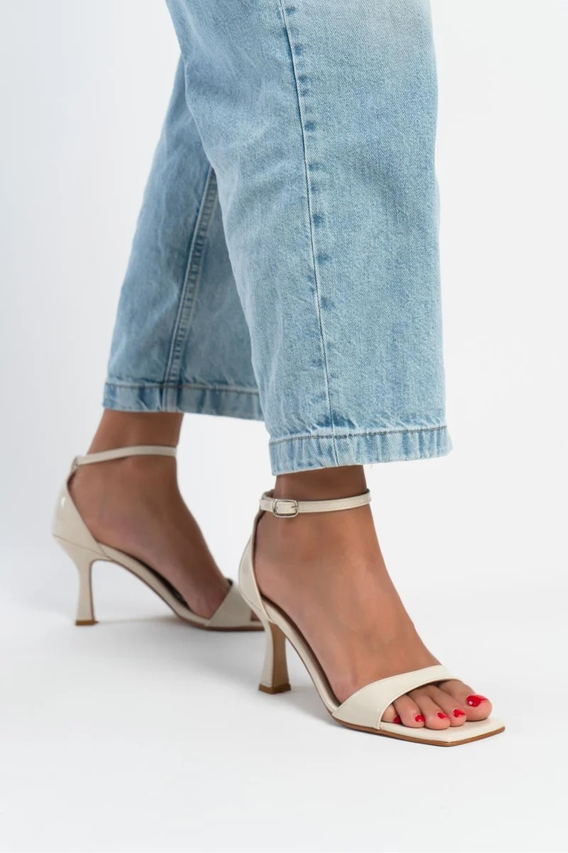 Chic high-heeled sandals with a minimalist ankle strap and square toe, offering a clean and elegant silhouette perfect for both casual and dressy looks