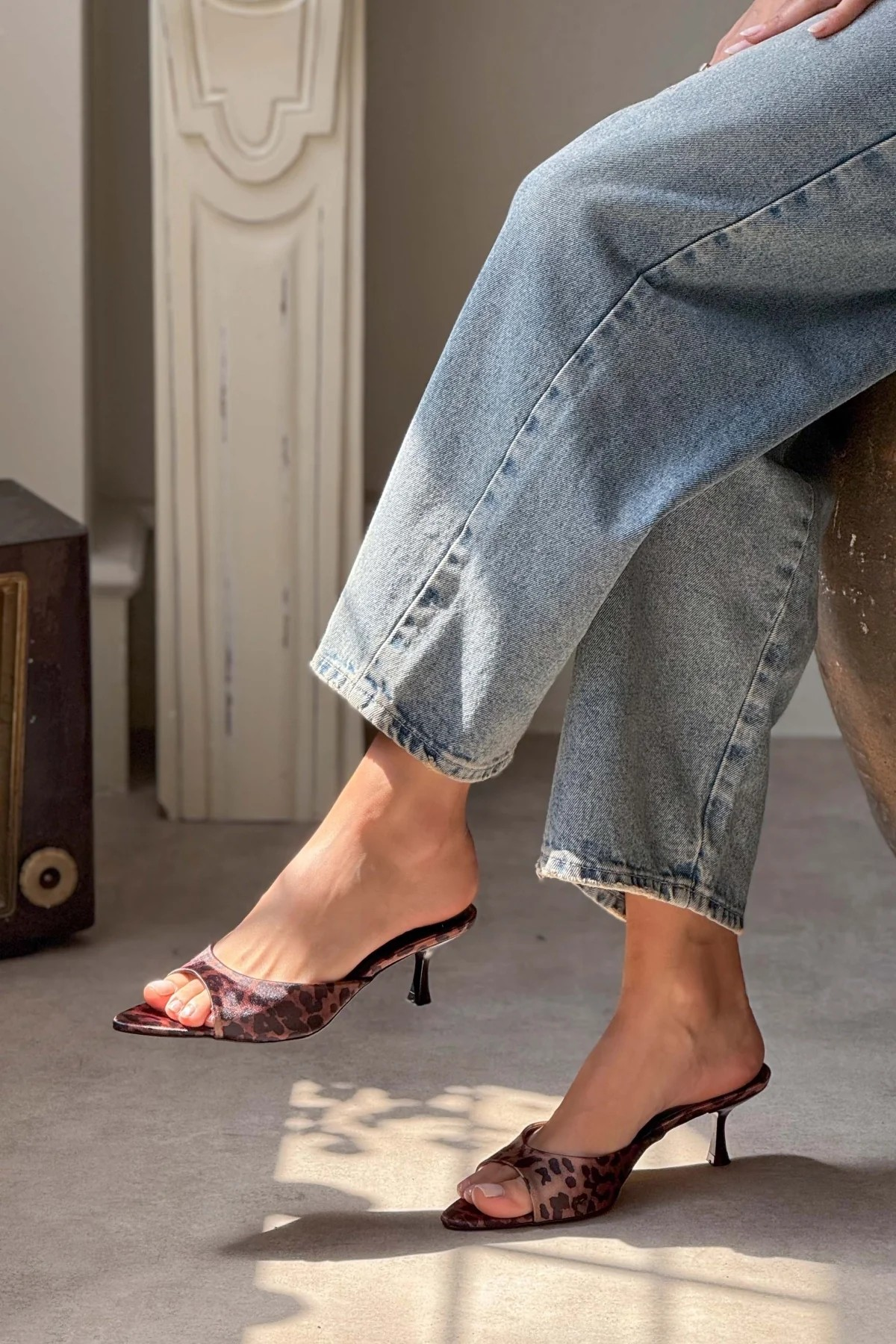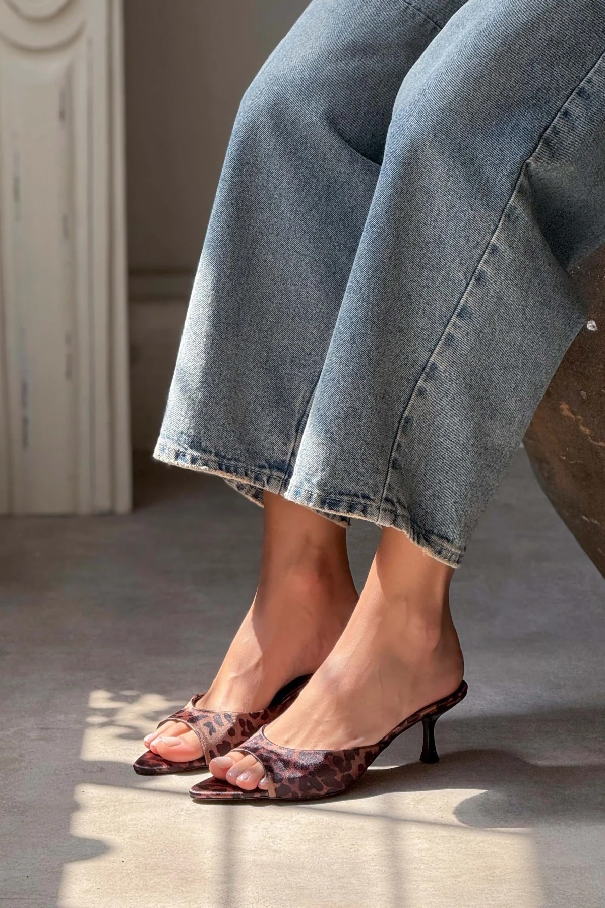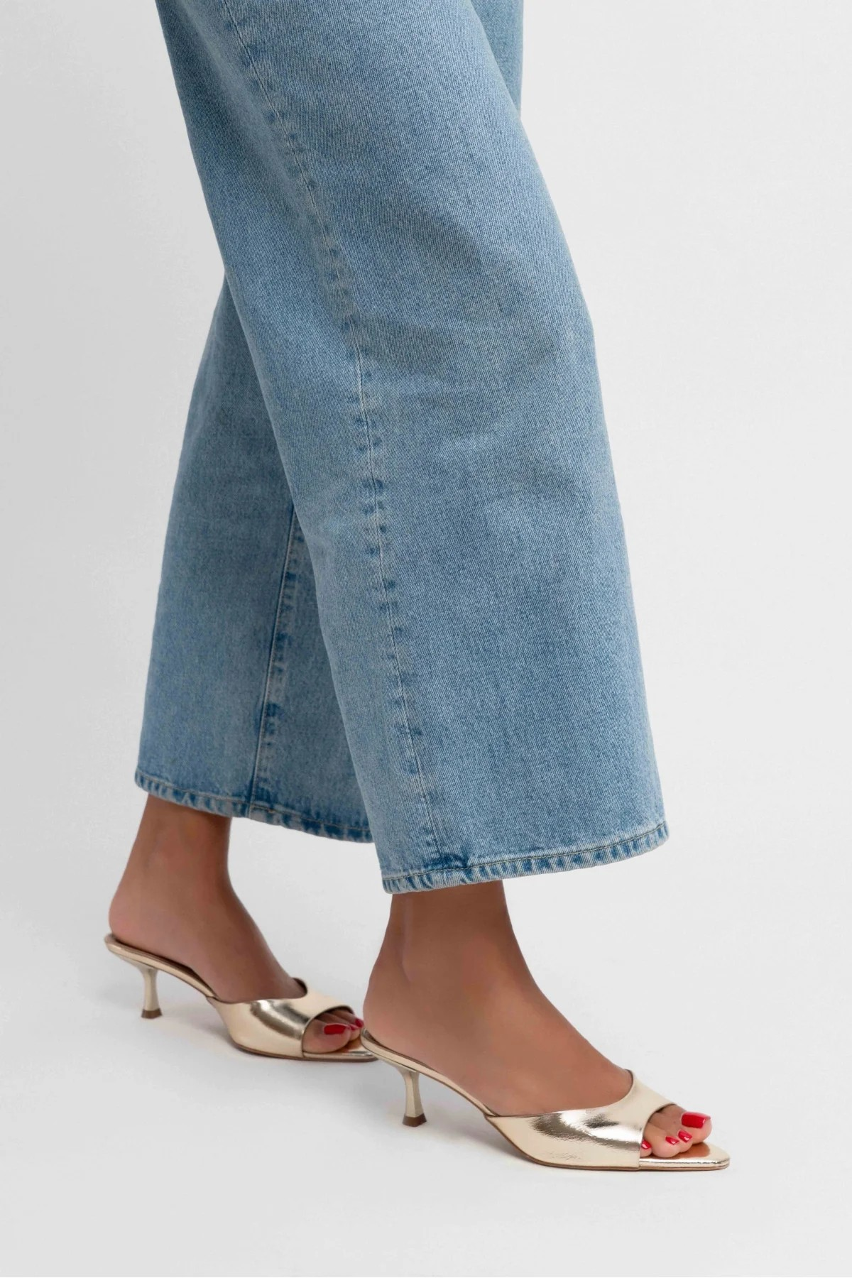 Sleek slip-on mule featuring a minimalist design with an open toe and sculpted kitten heel. Perfect for both casual and dressy occasions