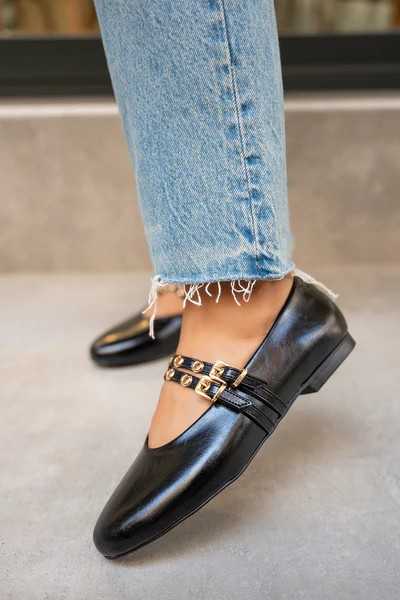 Step into effortless elegance with these stylish flat shoes, designed for all-day comfort and chic appeal. Featuring a modern round toe, double strap detail with gold accents, and a versatile design, they’re perfect for both casual outings and polished everyday looks. Pair them with jeans, dresses, or office wear for a timeless finish